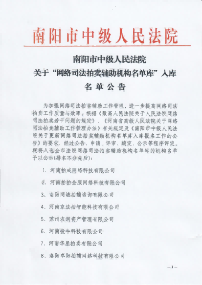 拍賣公告(南陽房地產租賃經營權) 2025-10-28 |
